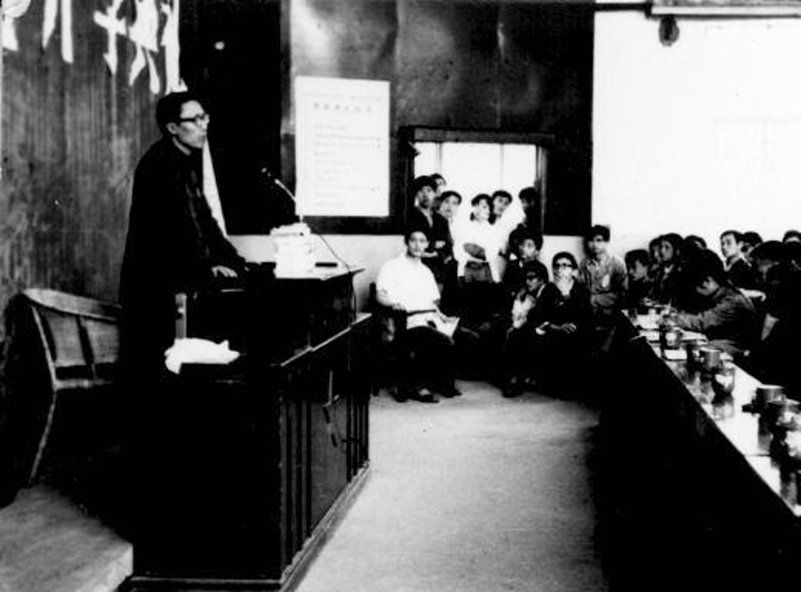 刘道玉校长在武大中文系78级毕业生举办的写作讲习班开班典礼上讲话(1982年5月)。 受访者供图